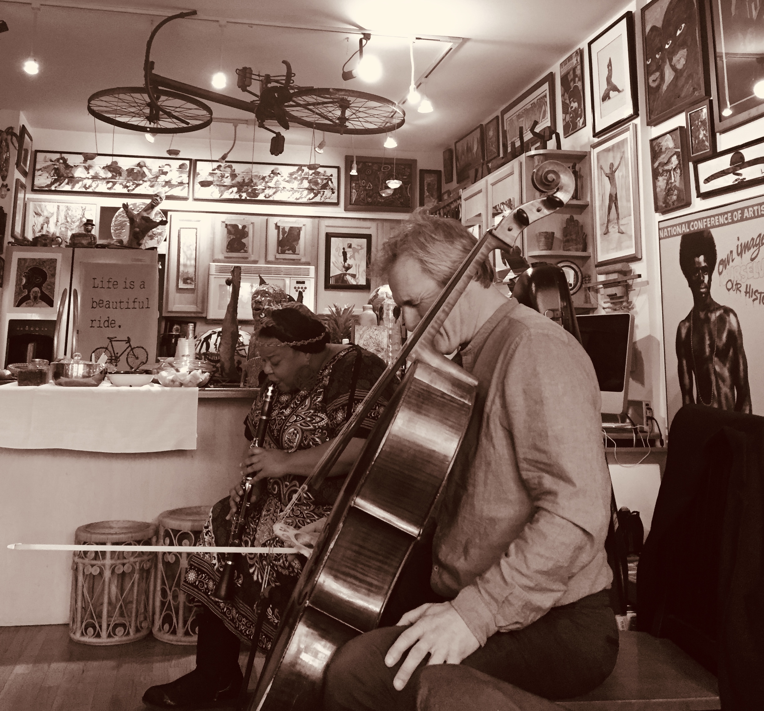 Une manière de parler de la juste démesure de toute musique improvisée, se jouant par nature de l’équilibre et du déséquilibre, de la stabilité et de l’instabilité, serait d’invoquer un autre couplage : celui du révérencieux et de l’irrévérencieux. Car, passionnément ou sobrement, sobrement et passionnément, chacun des musiciens de ce quinzième et dernier ensemble de The Bridge à se mettre en branle, dans cette première génération, mobilise à sa manière les ressources de l’expressivité la plus débridée, voire d’une salubre théâtralité. On retiendra peut-être, anecdotiquement : de Didier Petit, qu’il est le premier violoncelliste au monde à avoir réellement joué de son instrument dans des conditions d’apesanteur, dans la stratosphère, après mille expériences tentées à la surface de la planète ; de Jason Stein, qu’il est l’un des rares improvisateurs à avoir allumé un feu de clarinette basse au Madison Square Garden, en première partie de l’une des comédiennes de stand-up les plus célèbres en Amérique du Nord, quand il ne vaque pas à des occupations plus underground ; d’Edward Perraud, batteur voltigeur et impertinent homme de spectacle, très doué pour se démultiplier, qu’il a lui-même su créer en France des dialogues inédits entre musique et parole proférée ; de Josh Berman, qui mène une double vie parfaitement équilibrée de cornettiste et de pédopsychologue, qu’il a réinventé à ses heures perdues la musique du Austin High School Gang. Pourtant, ne voilà pas tout. Leurs vies de musiciens ne se réduisent pas à quelques hauts faits.