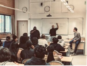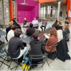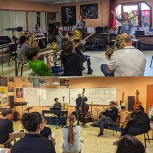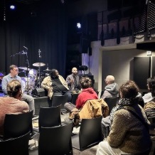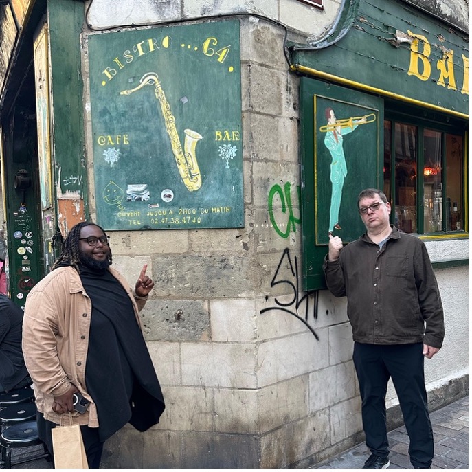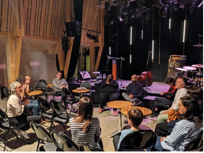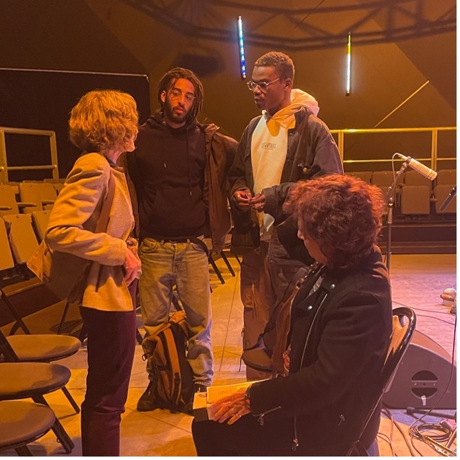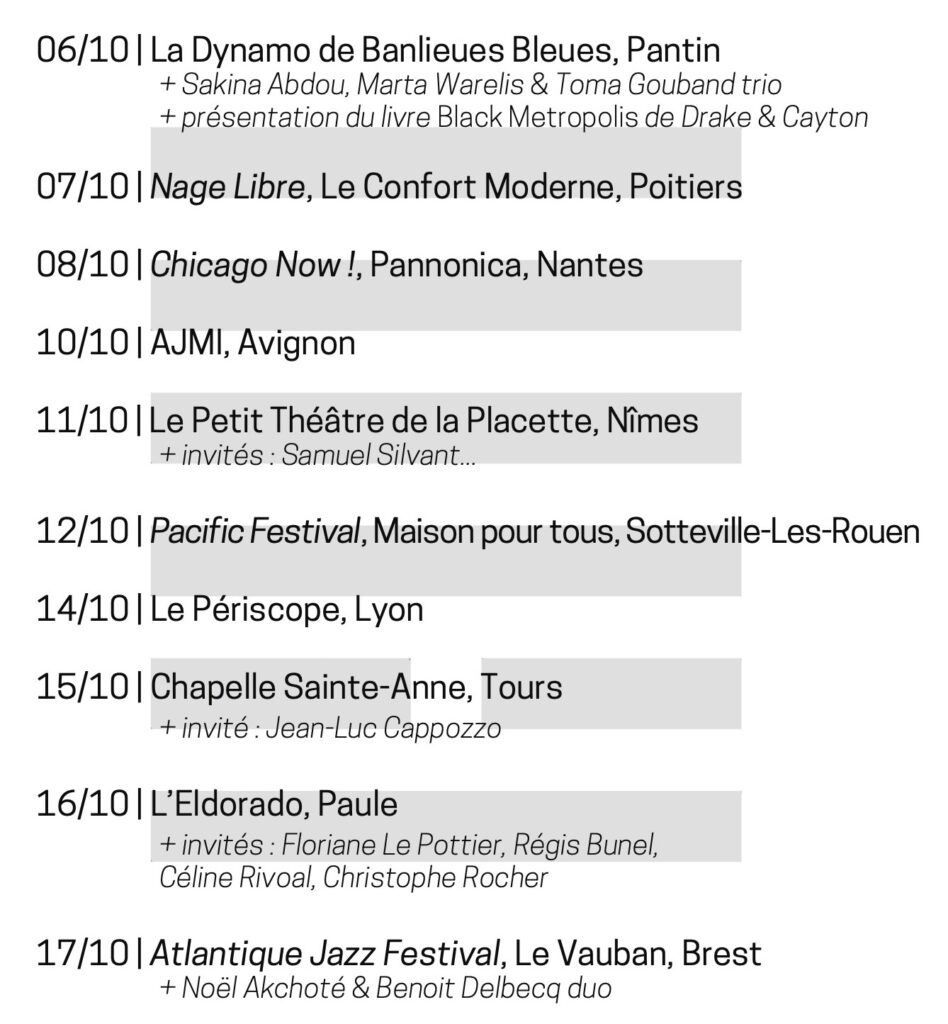 And then there were all the encounters on the sidelines. Full margins. Full hearts. With the students of Paris 8 University – Saint-Denis, with Danièle Joly and Anne Raulin, co-editors of the very first French version of Black Metropolis, the masterpiece of urban sociology on Chicago, written by Horace R. Cayton and St. Clair Drake, with students from the Conservatoire de Poitiers and the Lycée Gustave Eiffel in Gagny, at IRCAM with Jeff Albert to work on the Somax2 program created by Gérard Assayag and developed by Marco Fiorini, at the MJC – Les Hauts de Belleville with students from Paris 8 University and those from the Jazz and Improvised Music Department of the Conservatoire National Supérieur de Musique et de Danse de Paris (CNSMDP), in Lyon with students from the CFMI and ENM, and in Guipavas with students from the Collège du Vizac.