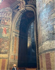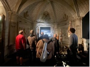 Thursday, October 9, Albi. Lenard Simpson, Jeff Albert, Christian Dillingham, and Nicolas Pointard are staying with Roland Ossart and Claire Foltete, close friends of Le Frigo (while Paul Wacrenier is at Le Petit Faucheux in Tours with the Healing Orchestra). On the menu for this exploratory tour: veal sauté, a visit to Sainte-Cécile Cathedral (patron saint of musicians), artwork created from snail trails, a demonstration of lenga d’òc, flower-covered skulls…