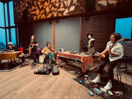 ProMusica, 16 avril. Dans l’antre du dragon et ingénieur du son Ken Christianson, The Bridge #2.4 (de gauche à droite : Jozef Dumoulin, Morgane Carnet, Macie Stewart, Damon Locks et Fanny Lasfargues) fait ses grands débuts à l’ombre des ombres. Les sons sont souterrains ou aériens, comme les dragons.