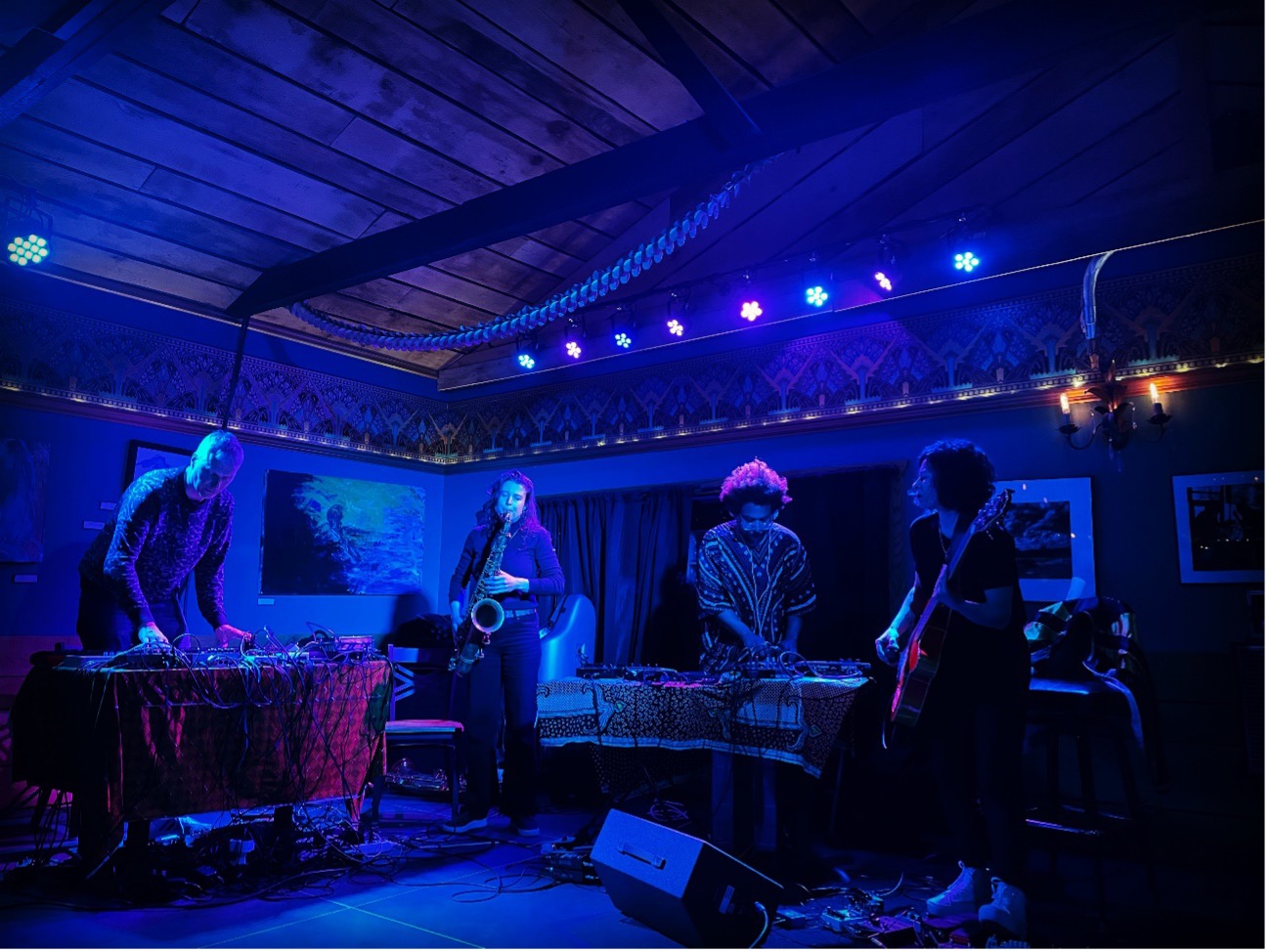 Elastic – Pleiades Series, 26 avril. Dans différents ordres, ou différentes configurations, Morgane Carnet, Fanny Lasfargues, Emilie Lesbros et Macie Stewart, avec la saxophoniste Sarah Clausen, tentent de décliner différentes approches de l’improvisation libre. Puis ouvrent le ban à toutes les musiciennes dans la salle.