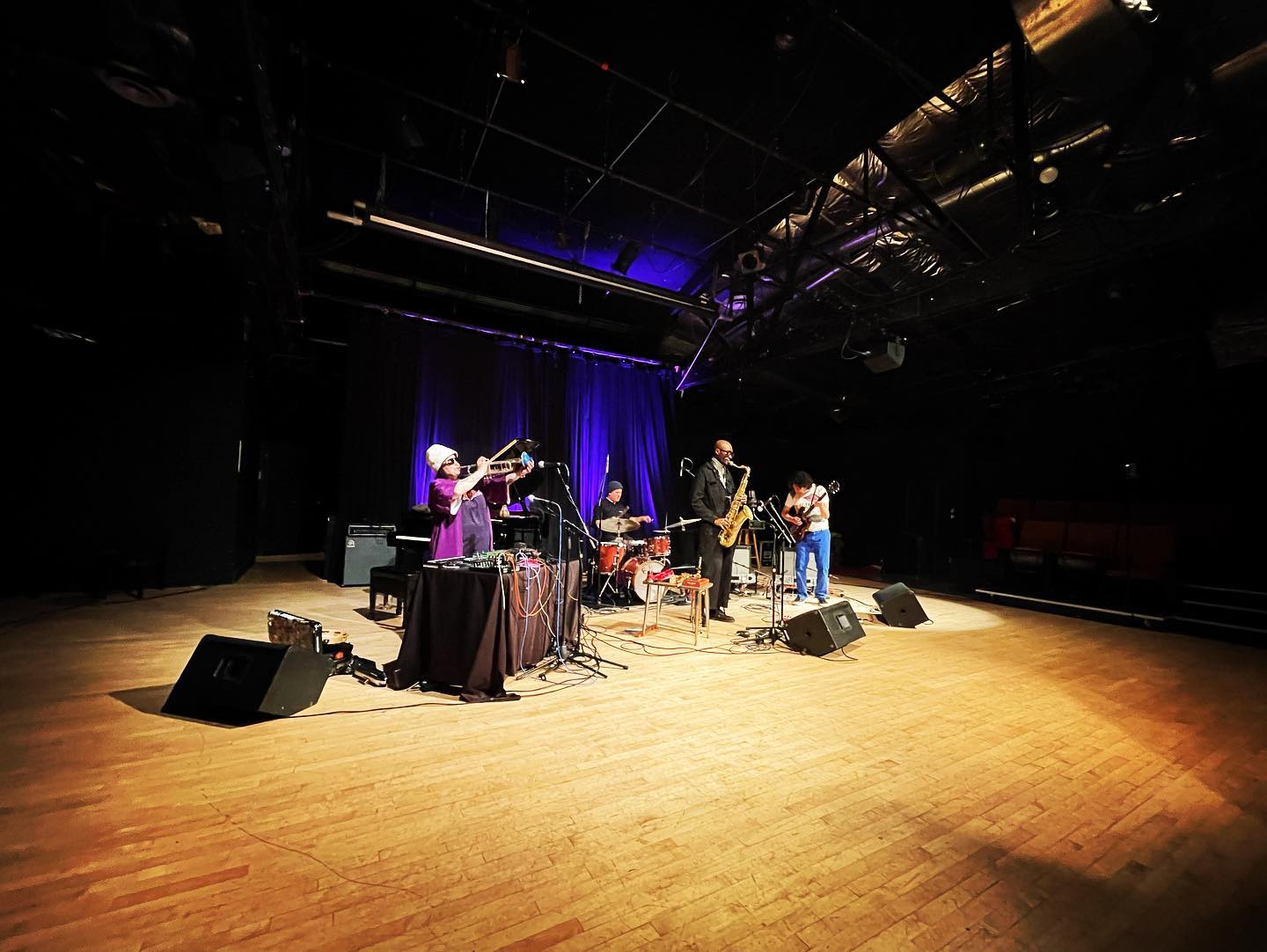 The Bur Oak, 16 avril. Pendant ce temps-là, à Madison, grâce aux amis et alliés de BlueStem Jazz, The Bridge #2.7 (de gauche à droite: Jaimie Branch, Tim Daisy, Isaiah Collier et Gilles Coronado) fait ses grands débuts dans le feu et dans les flammes des grooves.