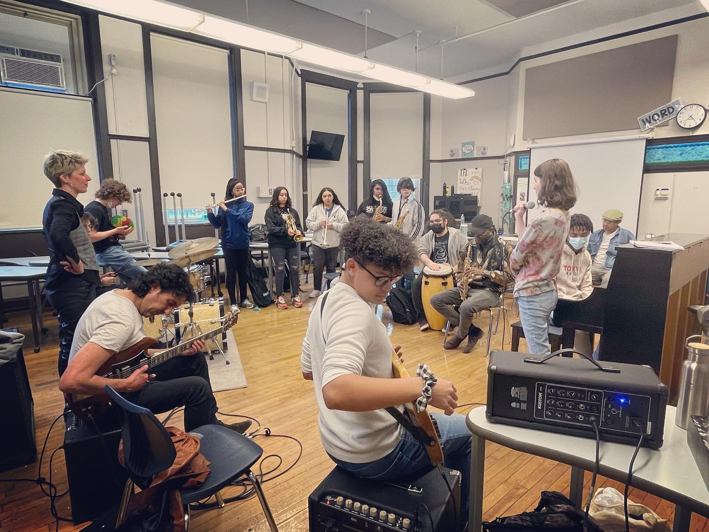Chicago West Community Music Center, 30 avril. Morgane Carnet et Gilles Coronado interviennent dans la classe de Howard Sandifer, avec l’orchestre du CWCMC.