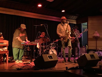 The Whistler, 27 avril. Gilles Coronado dans la tourmente, entre le ténor terrifiant de Gerrit Hatcher et le ténor somptueux d’Ed Wilkerson, près de l’autre guitare dissimulée, celle de Tim Stine, devant les claviers insinuants de Daniel Van Duerm, derrière la batterie prolixe de Vincent Davis. Le bonheur se trouve à l’avant-dernière case.
