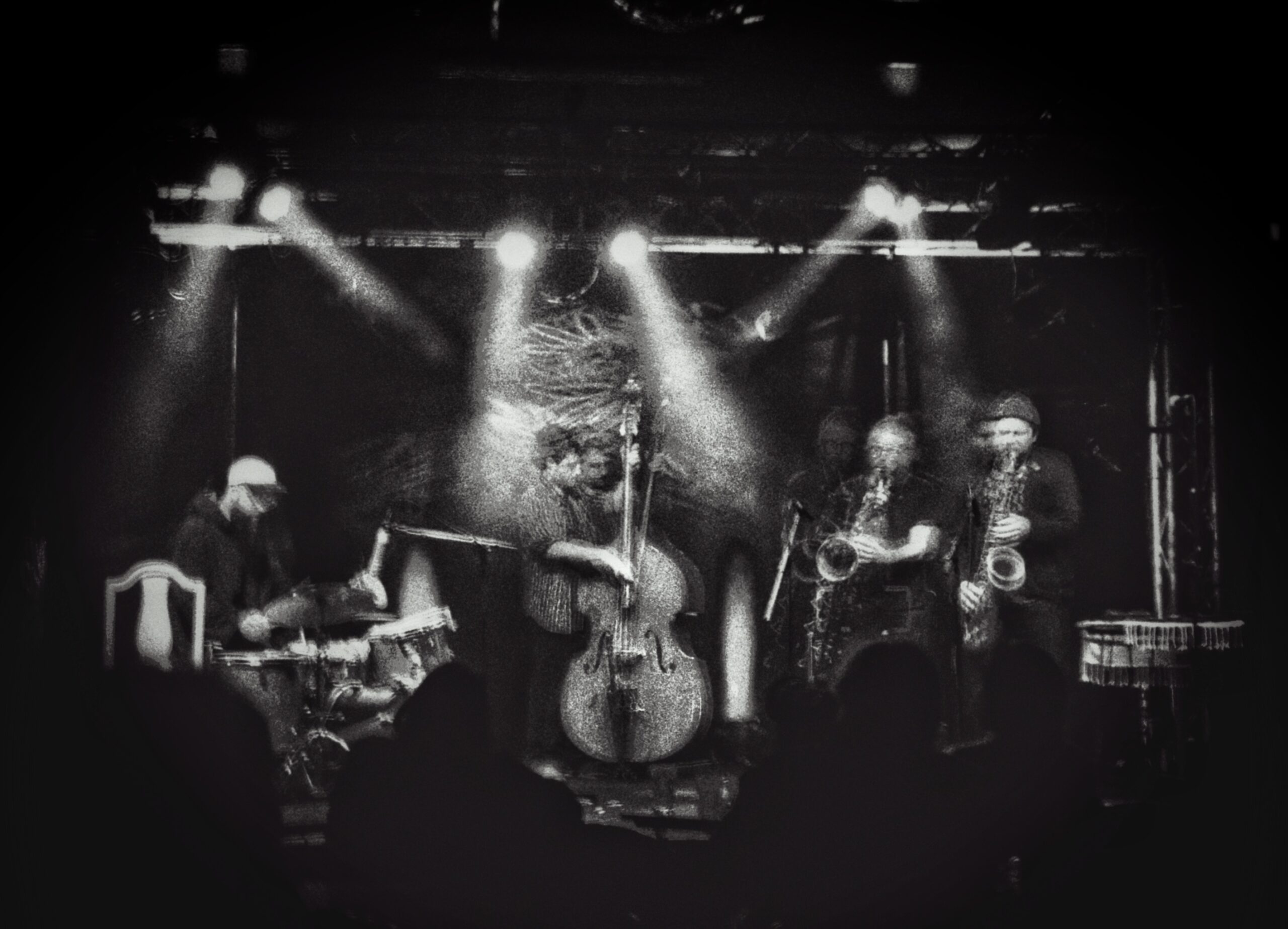 Wednesday, January 31, Pantin. For the final concert of this very first tour, at La Dynamo, we had to get behind the waterfall and waves of Frisbee Shop, the unbridled quintet that opened the evening. Pretending to be restrained and broken, wiping the slate clean of sounds, pleating the silence for a long time, keeping only the stigmata of the saffron-red sound. Access to the secret chamber.