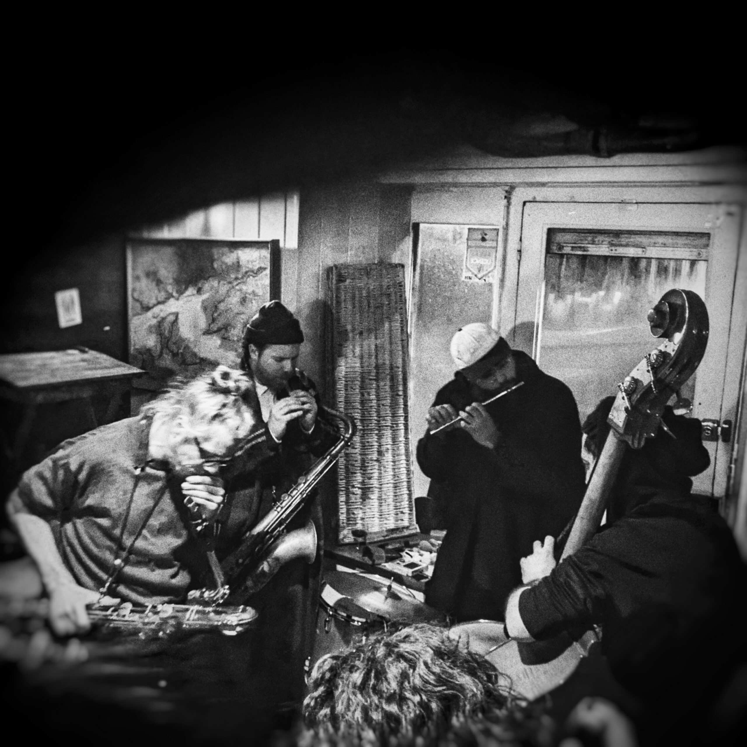 Friday January 19, Brest again. It wasn’t planned, but it was perfect timing. No stage, just a corner bar and paradise, the Triskell, on a street corner, Place Guérin. Hunter Diamond, Florian Nastorg, Yoram Rosilio and Mikel Patrick Avery keep a motley swarm of regulars and stragglers swinging, happy to squeeze and push into the narrow room. All the headlights are on or off. People whistle, laugh, shout and celebrate. The story goes that all this noise attracted a seagull, which flew straight into the wall.