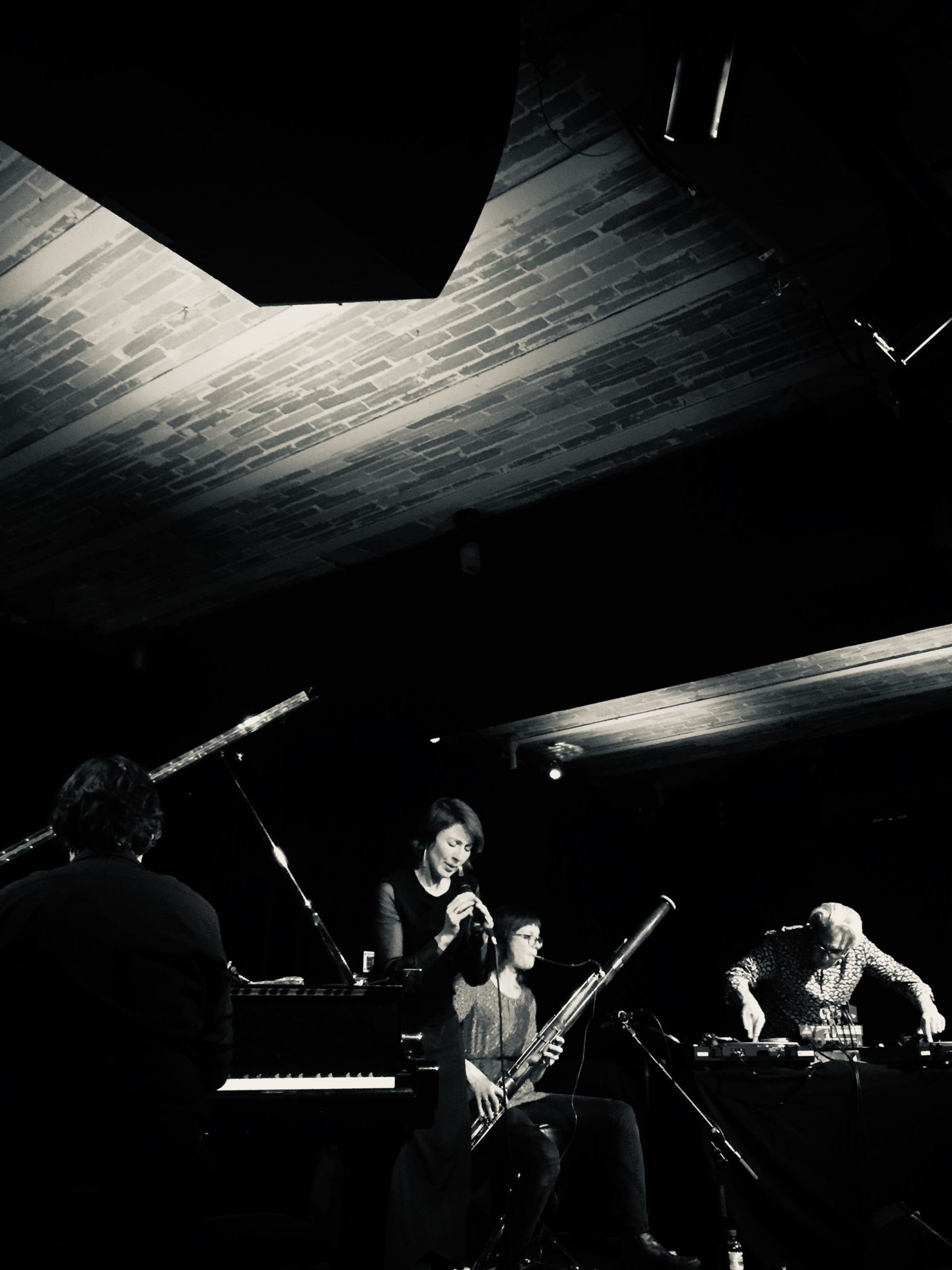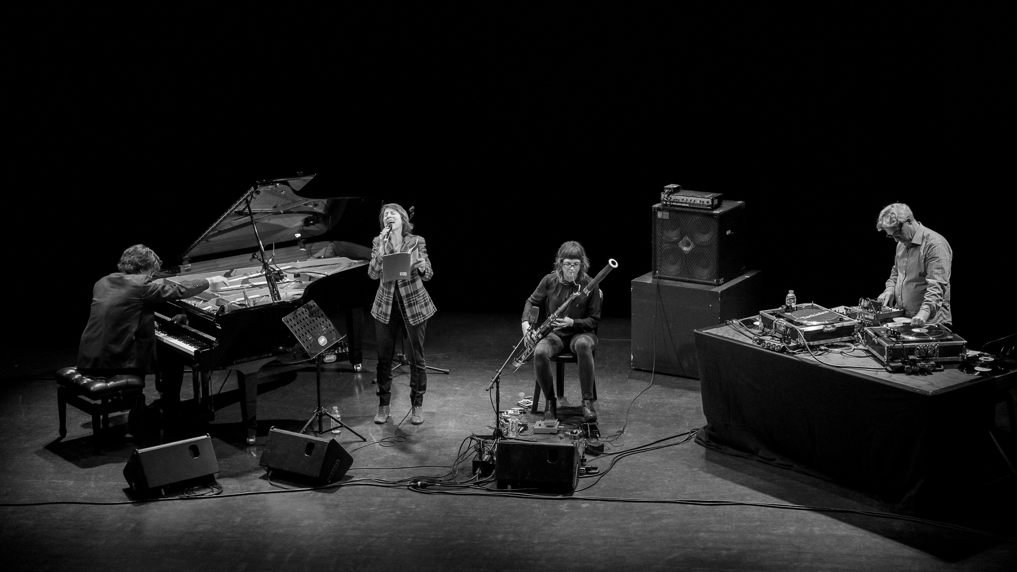 Adepte du piano préparé et des effets électroniques, Benoît Delbecq ne cesse depuis plus de vingt ans de traverser le champ jazzistique dans toute sa largeur : de l’improbable Institute for Artistic and Cultural Perception d’Alan Silva à son propre intenable collectif, Hask, de la fréquentation de Steve Lacy ou de Mal Waldron aux études suivies auprès de Steve Coleman ou de Muhal Richard Abrams, et jusqu’aux aux recherches menées avec les formations Kartet, The Recyclers ou Silencers, et ses propres trios et quintets. Katie Young, élève d’Anthony Braxton, est notamment l’auteur d’un enregistrement en solo de basson manipulé, modifié, magnifié, parmi les femmes émancipées désacralisant et resacralisant à leur seul désir les instruments les plus consacrés. Lou Mallozzi, aux platines et à l’électronique la plus évanescente ou la plus perturbatrice, est un artisan du son et du bruit, lorsqu’ils cessent d’être contradictoires. Un artisan et un maître du genre, des soundtracks, qui enseigne cet étrange art de faire et de défaire à l’Art Institute de Chicago. Il est prévu que le quartette se scinde en sous-ensembles (différents solos, duos, trios) pour jouer de toutes les densités possibles, de toutes les transparences aussi, telles les pièces mobiles, versatiles, métamorphiques d’un recueil de poèmes ou d’un échiquier de timbres. Le reste, tout le reste est imprévisible.