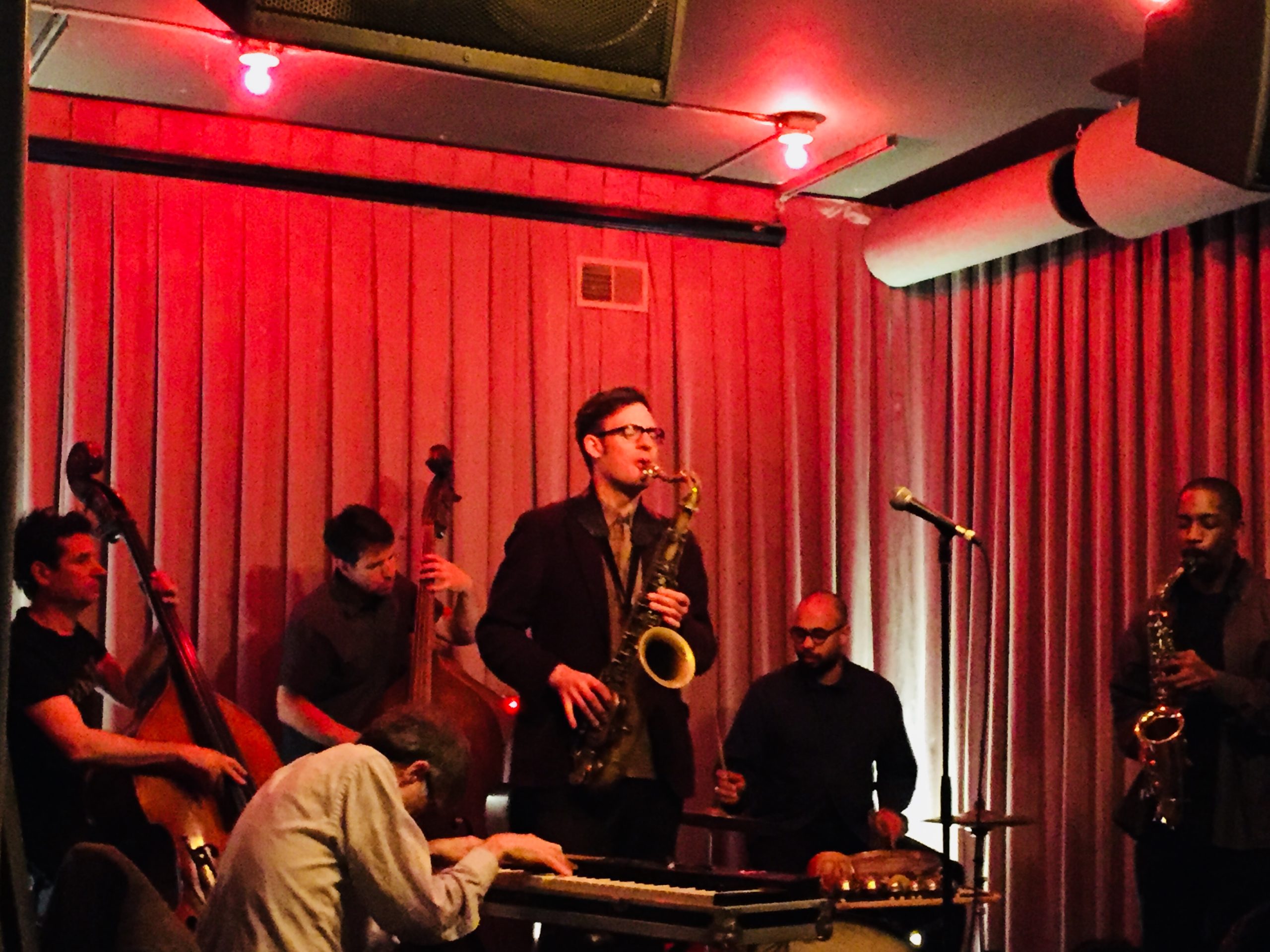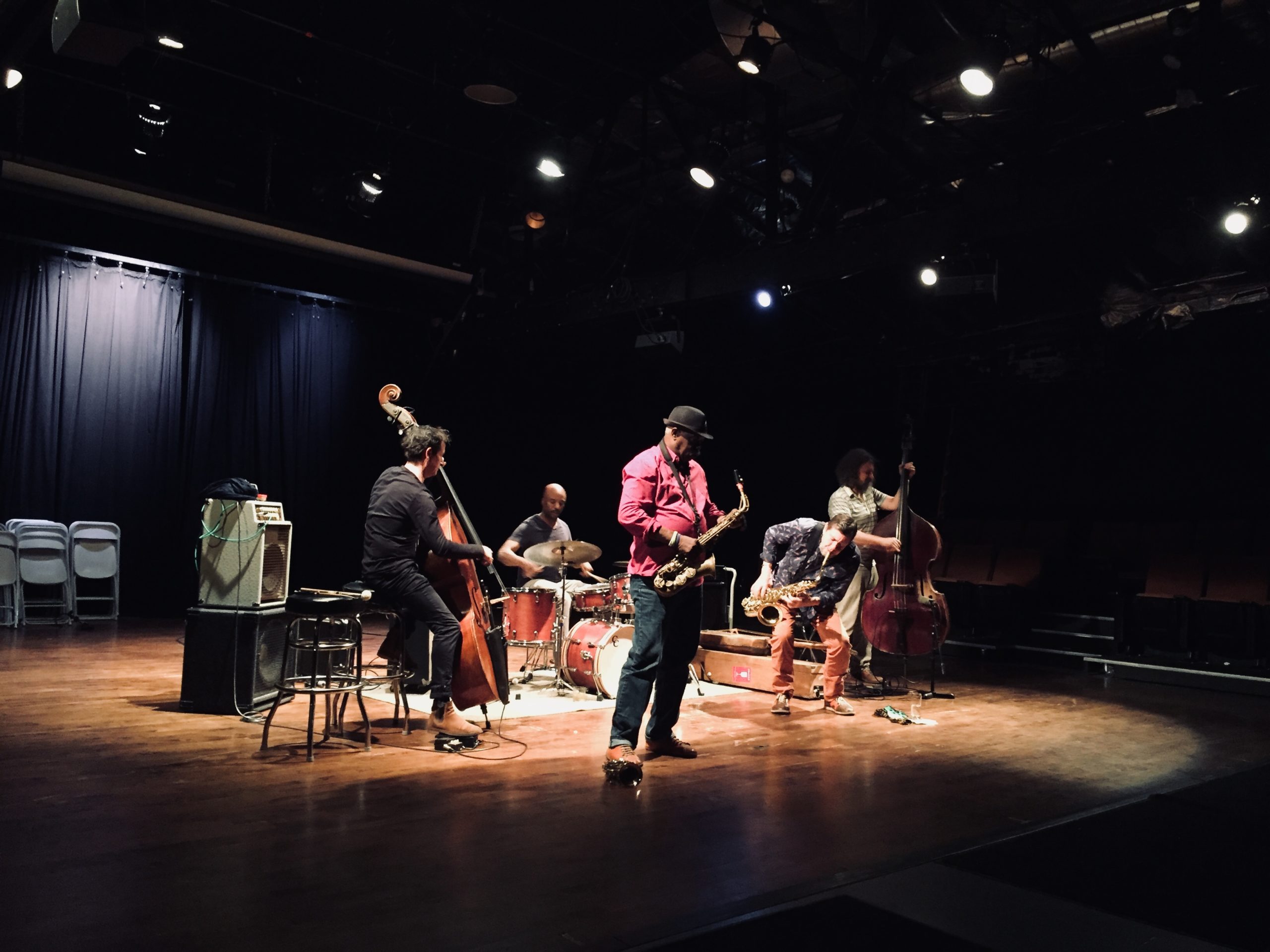 En l’occurrence, il y a de l’historique (et du légendaire) dans un “Dream Band” qui pour une fois mérite cet effronté qualificatif. En 1996, Daunik Lazro avait constitué avec Joe McPhee, compagnon de route dès le début de la décennie, le quintette Dourou, déjà complété par deux contrebassistes et un batteur. Entre eux et avec d’autres, il y eut d’enfiévrées souffleries en présence d’Evan Parker et d’André Jaume, d’échevelés encordages en présence de Raymond Boni et de Claude Tchamitchian. « Ce Bridge nous fait traverser 20 années (lumières), rapporte Lazro, pour approfondir notre aventure sonique », avec cette fois-ci les contrebassistes-conteurs que sont Joshua Abrams et Guillaume Séguron. L’un et l’autre partagent le même amour pour les formes hypnotiques comme pour les formes incertaines de la musique. Abrams dans toutes ses collaborations chicagoanes (avec Nicole Mitchell, David Boykin, Mike Reed ou Jeff Parker…), et lorsqu’il descend dans le cratère des musiques rêveuses avec Town & Country, ou lorsqu’il grimpe sur le versant des musiques éveilleuses avec Natural Information Society. Beau comme la rencontre d’El Mâalem Mahmoud Guinia et de Morton Feldman sur la contrebasse de Fred Hopkins… Séguron, précipité dans la nue par Jean-François Jenny-Clark, en bourlinguant auprès d’Anthony Ortega ou de Lionel Garcin, de Régis Huby ou de Matt Maneri, de Gerry Hemingway ou de Denis Fournier, mais aussi et surtout en questionnant inlassablement ses sources, qu’elles soient musicales et multiples, ou qu’elles soient d’ailleurs (la mémoire des Républicains espagnols, la littérature de Jorge Luis Borges, la peinture de Robert Motherwell, les photographies de Shim, de Taro ou de Capa…). Joshua Abrams et Chad Taylor, qui alternent contrebasse et batterie avec guembri et mbira, se sont rencontrés lors des jam-sessions du dimanche soir, au Velvet Lounge de Fred Anderson, à Chicago. Ils y formèrent même un trio avec Matana Roberts, avant que le batteur ne parte pour New York où son crible de rythmes cliquetants et voltigeurs a fourni une horlogerie de fulgurances et de papillonnements aux formations de Cooper-Moore, de Jemeel Moondoc ou de Marc Ribot, parallèlement au Chicago Underground dont il règle toujours les mouvements avec Rob Mazurek.
