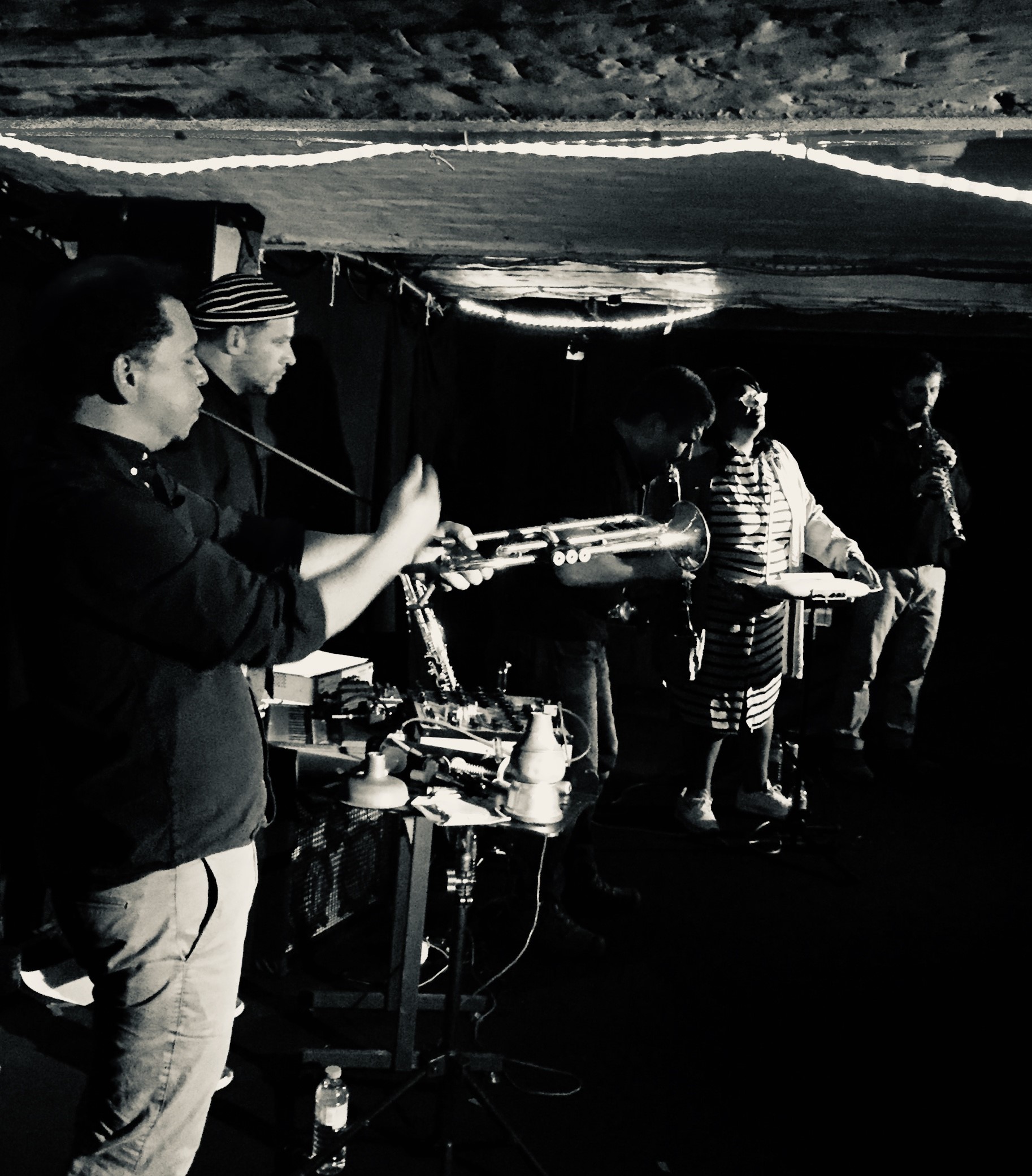 Par cinq fois, pour ce douzième Bridge : Lisa E. Harris et ses voix transcendant l’espace le temps et les identités, Mike Ladd et ses flèches de mots, la lave bulleuse des clarinettes de Christophe Rocher, les saxophones cascadant de Lionel Garcin, Christian Pruvost et l’hydre de ses trompettes. Ce sera un wind ensemble, une intelligence en essaim, forcément cinq funambules. Ensemble, ils composeront (improviseront) un bouquet froissé de souffles soudainement tempétueux, soudainement encalminés. C’est l’évidence, leurs souffles dessineront autant de roses des vents, leurs instruments à vent seront aussi des boussoles de musique. Il suffira d’un déplacement d’air, de mille et un déplacements d’air. A wind ensemble. Et avec l’air soufflé qui se déplace, avec cette distillation de souffles, un imperceptible déplacement de l’axe du monde, de ses positions, de ses dispositions, de ses orientations. On peut rêver.