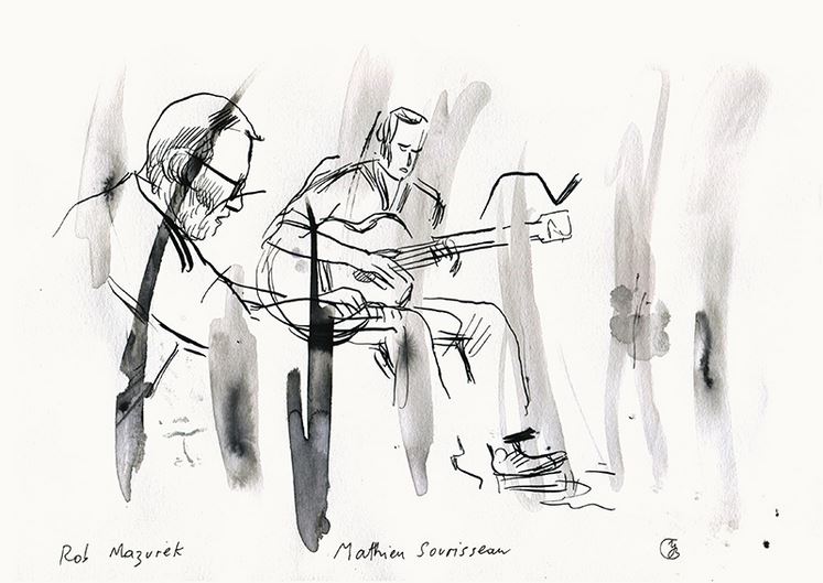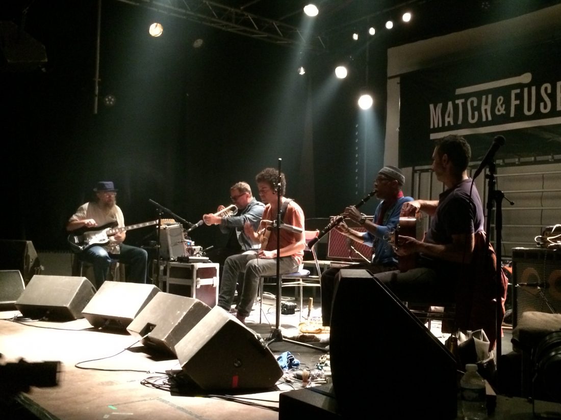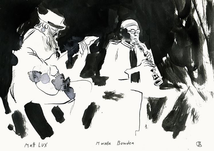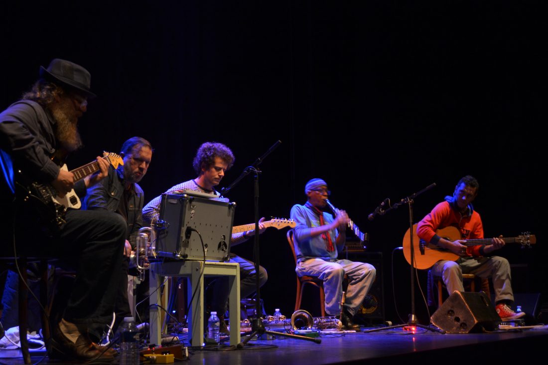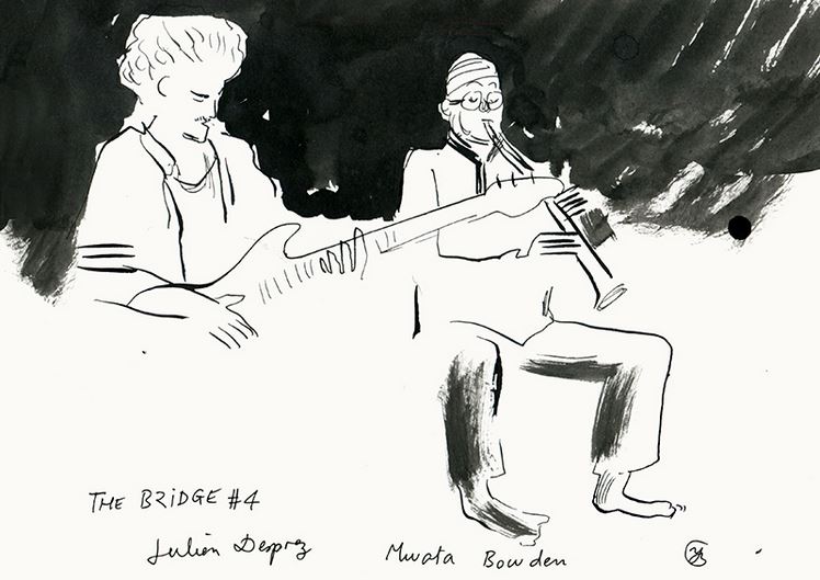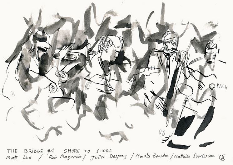 Mais encore ? La décrire à travers la personnalité des musiciens ? Car cet ensemble est aussi né de la rencontre – à distance déjà – de quelques individus ayant répondu à l’appel de The Bridge, réseau transatlantique d’échanges entre musiciens de Chicago et de France. Rob Mazurek et Matt Lux se connaissent depuis toujours, depuis l’expérience d’Isotope 217 notamment, et se côtoient régulièrement dans les orchestres incessamment imaginés par Mazurek (Exploding Star Orchestra, Pharoah and the Underground, Pulsar Quartet…). Ce nouveau quintette est pour eux l’occasion de se produire réellement avec un Chicagoan bienaimé, ancien président de l’A.A.C.M. et directeur de plusieurs ensembles à l’Université de Chicago, qui a reçu le Chicago Jazz Hero Award en 2013 : Mwata Bowden. Julien Desprez et Mathieu Sourisseau n’avaient encore jamais joué ensemble, mais l’un et l’autre ont pris part à certaines des aventures collectives qui ont défrayé la chronique de l’improvisation en France ces dernières années (telle l’hydre du collectif Coax pour le premier, tel le Tigre des platanes pour le second). L’un et l’autre avaient déjà croisé la route de quelques Chicagoans : Sourisseau en invitant Hamid Drake aux côtés de la chanteuse éthiopienne Etenesh Wassié, et Michael Zerang aux côtés du poète Daniel Scalliett; Desprez avec David Grubbs, ou dans la version 2.0 de Tortoise à Paris, et pour une première expérience en duo des profondeurs avec Rob Mazurek. L’un comme l’autre pratique allégrement le nécessaire mélange des genres, du jazz, de la musique improvisée, des musiques électriques ou électroniques, des musiques dites « du monde »… Ce qui ne devrait pas indisposer les musiciens de Chicago, habitués à l’inhabituel par nature et culture, par exemple Bowden avec les Chi-Lites (ou avec Muhal Richard Abrams), Mazurek avecStereolab (ou avec Bill Dixon), Lux avec Iron & Wine(ou avec George Freeman).