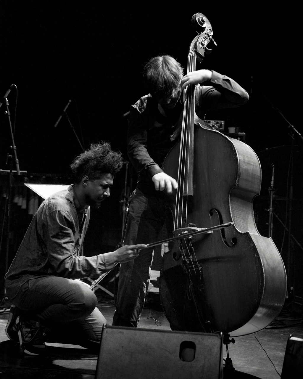 À quoi s’attendre alors ? À un orchestre modulaire capable de jouer d’abondance, à l’infini, comme de méditer les leçons de l’infinitésimal (selon, par exemple, que Tyshawn Sorey joue de la batterie ou du trombone, transformant un sextette avec rythmique incorporée et spoken word artist en la personne de Khari B., dans la lignée de Langston Hugues ou d’Amiri Baraka, en formation à voix, vents et cordes, de chambre presque), travaillant les centres de gravité et les forces d’attraction, les champs magnétiques, à la recherche en musique de multiples perspectives, d’un sens qui soit de l’orientation, de l’exploration et de la construction.