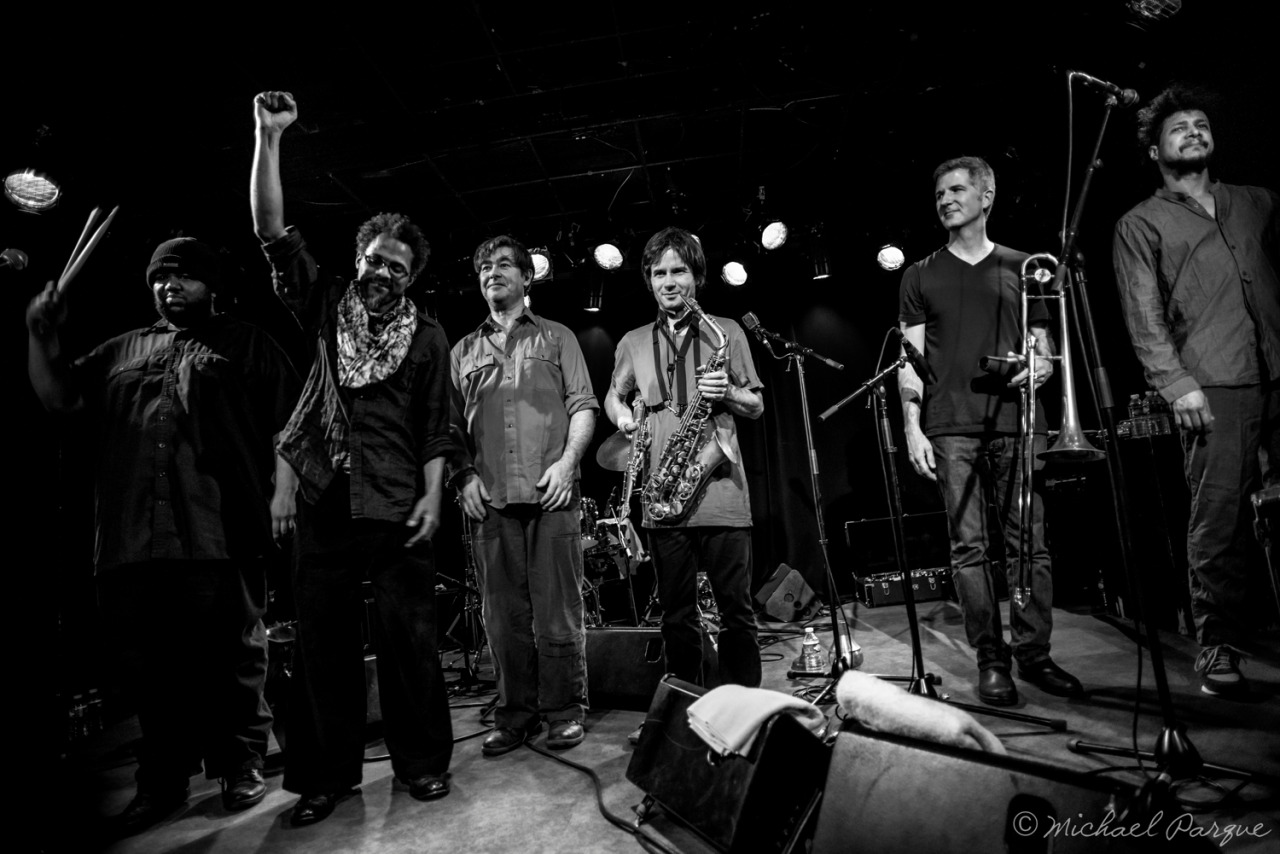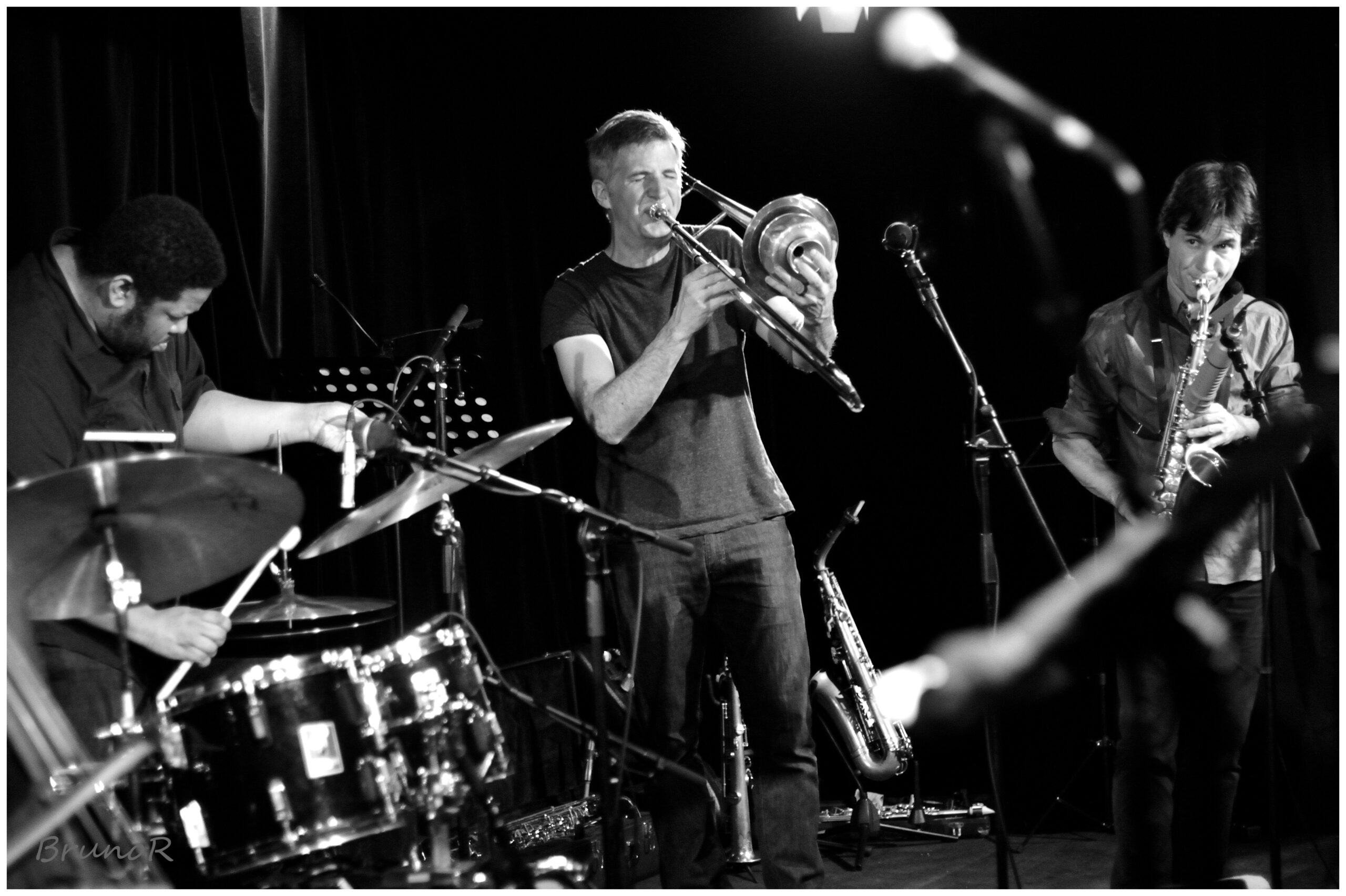 Comme toutes les associations de musiciens proposées par le réseau d’échanges transatlantiques The Bridge*, cette formation est une histoire de mise en commun et de forces en présence, suscitée par le désir et quelques premiers croisements. Ainsi, Frédéric Bargeon-Briet et Guillaume Orti se sont beaucoup fréquentés à l’époque du collectif Hask, dans les années 90. Avec son ensemble polyvalent Nimbus, le contrebassiste n’a pas oublié d’inviter le saxophoniste, mais aussi le flûtiste Magic Malik (qui, de son côté, a collaboré avec Orti, au sein d’Octurn notamment). Briet, au cours d’un voyage aux États-Unis, en 2012, a rencontré Tyshawn Sorey à New York et Jeb Bishop à Chicago, avec lequel il a ensuite collaboré au sein de Bonadventure Pencroff. Sorey, qui connaissait Malik pour avoir gravité comme lui dans le système solaire stevecolemanien, partage avec Bishop et avec Khari B. ce dénominateur : George Lewis, tromboniste, improvisateur, compositeur, concepteur de programmes informatiques musicaux et musicologue à la Columbia University, avec lequel tous trois ont joué ou étudié. Et Khari B., fils du saxophoniste et clarinettiste Mwata Bowden, est récemment devenu le “chairman” de l’AACM à Chicago, l’organisation de musiciens créateurs qui fête ses 50 ans en 2015 et sur laquelle Lewis a écrit un livre. Ce qui fait dire à Briet : « Les trajectoires de chaque musicien composant l’orchestre sont comme les rayons de lumière convergeant vers le point de focus de la lentille d’une loupe. Après le premier concert à Sons d’hiver, une fois les premières notes, textes et paroles échangés, nous aurons traversé la lentille pour découvrir, en la parcourant, une dimension sublimée, autre, d’un monde qui nous est déjà familier. Nous serons à la fois d’un côté et de l’autre du miroir, observateurs et observés. » Tandis que Tyshawn Sorey prête à la musique le pouvoir « de questionner QUI nous sommes, et POURQUOI nous sommes – questionner la nature même de nos perceptions et ce qu’elles signifient. La musique EST, simplement. Elle ne veut rien, n’a besoin de rien. Elle opère dans cette région liminale qui sépare le “même” du “différent ». L’auditeur pleinement conscient devra s’abandonner aux sons, nettoyer le miroir qui réfléchit le soi, écarter le soi. »