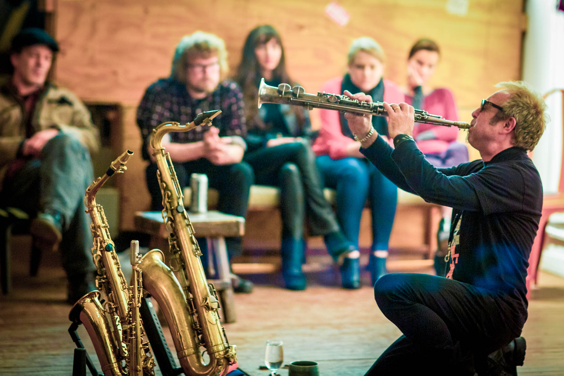 Retour au Whistler pour une seconde soirée partagée. Le quartette ouvre le bal, avec les trois saxes qui vrillent (soprano, alto et ténor) et la batterie qui fustige. Si le premier solo ou le premier lâchage échoit comme d’habitude à Ernest Khabeer Dawkins, les deux autres ne le laissent pas faire longtemps. Tandis qu’il suraiguise, Mars Williams s’égosille et Antonin-Tri Hoang s’humecte de sons, fait mine de s’engourdir. Il faut ensuite percer le bruit ambiant d’un bar à cocktails, d’abord a contrario, à coups de piano à pouces, de cloches et de mailloches, puis avec la spirale rugissante des deux altos et du ténor. Troisième pièce, Dawkins arme ses deux saxophones. Silvant lui construit un abri antiatomique avec des matériaux lourds, tandis que Hoang infiltre sa clarinette toujours aussi duveteuse. Elle s’esquive le temps d’une nouvelle offensive des deux ténors, puis revient pour clore les débats. Sur le dernier morceau, Mars Williams s’équipe de son sopranino et de ses tuyaux. Si ses comparses tentent de couvrir ses grelottements, il ne tarde pas à leur fausser compagnie pour s’élever, gravir et défaillir dans un cri. Silvant cible un rythme à point nommé, une bobine autour de laquelle s’enroulent les saxophonistes. On aurait pu en rester là, satisfait, mais ça cafouille encore un peu. Il manquait un solo à Dawkins qui l’obtient pour tout envoyer jazzer. Pause. Le second set change radicalement la donne, car le quartette accueille de nombreux invités et ses membres n’hésitent d’ailleurs pas à leur céder la place. Avec eux, il y a d’abord Ed Wilkerson (saxophone ténor) et trois membres de Sonic Communion : Douglas R. Ewart, Bernard Santacruz et Michael Zerang. Le contrebassiste, en appétit, étreint et embrasse l’ensemble de leurs interactions, il est partout à la fois, à peine tempéré par un cor anglais insinuant et des percussions sur ressorts. C’est Wilkerson qui se charge de la transition en prenant le plus enveloppant des solos, tout en rondeurs et en vapeurs. Il tire des draps de sons sur la salle cramoisie et cela inspire à Zerang un mode furtif de jeu qui ne laisse passer que le sopranino de Williams venant égratigner le ténor statuaire. Pour la dernière improvisation de la soirée, restent Santacruz et Wilkerson, auxquels s’ajoutent Silvant, Nick Mazzarella (saxophone alto), Keefe Jackson (saxophone ténor, clarinette basse) et Jason Stein (clarinette basse). Les escarpements littéralement rocheux de tous ces instruments à vent font sur scène comme un relief de montagne. Si Stein s’engouffre entre les cols, comme il sait faire, Jackson tend plutôt la perche à Silvant pour marauder avec lui. Mazzarella attend son tour pour s’entourer des deux clarinettistes et pénétrer dans une faille. Feu de clarinettes et de cymbales, fleuve de métal en fusion. Une femme très belle s’est mise à danser.