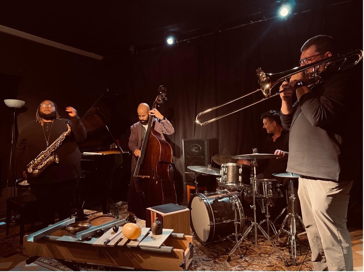 Mercredi 8 octobre, Nantes. Se sont-ils rendu compte que le trombone et le piano avaient commencé seuls pour, trente minutes plus tard, avec le potomitan du plus extraordinaire non-solo de contrebasse, en cristaux de glace, planté au beau milieu du temps passé, se retrouver seuls à nouveau, mais métamorphosés ? Nous aussi au passage. Dans un déroulé de toute évidence une fois de plus, avec des élans réprimés et relâchés, des caches et des niches et des chambres secrètes, The Bridge # 2.13 est indolemment passé par monts et merveilles au Pannonica, recevant même au second set la visite de Sylvain Kassap qui était déjà là dix ans plus tôt, presque jour pour jour (le 13 octobre 2015 avec The Bridge # 9: Transatlantic Amazon Gods, featuring Mike Ladd, Mankwe Ndosi et Dana Hall). Il aura fallu de la persistance et de la résolution pour que les racines s’évasent et défoncent la dalle du temps. Un trident d’instruments à vent sur un piano, une contrebasse et une batterie à socs. Monts et merveilles. A.B. Spellman disait que « le nouveau musicien s’est principalement employé à cultiver le Merveilleux. Et il juge son travail davantage par la fréquence avec laquelle le Merveilleux survient que par des valeurs compositionnelles. »