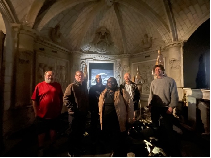 Jeudi 9 octobre, Albi. C’est chez les grands amis du Frigo, Roland Ossart et Claire Foltete, que Lenard Simpson, Jeff Albert, Christian Dillingham et Nicolas Pointard transitent (tandis que Paul Wacrenier est au Petit faucheux, à Tours, avec le Healing Orchestra). Au menu de ce qui fait aussi une tournée, un voyage exploratoire : sauté de veau, visite de la Cathédrale Sainte-Cécile (patronne des musiciens), œuvre d’art produite par des traces d’escargots, démonstration de lenga d’òc, crânes fleuris…