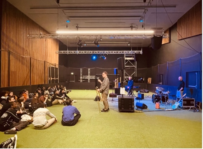 Et il y eut toutes les rencontres en marge de. Pleine marge. Plein cœur. Avec les étudiants et étudiantes de l’Université Paris 8 – Saint-Denis, avec Danièle Joly et Anne Raulin, coéditrices de la toute première version française de Black Metropolis, le chef d’œuvre de sociologie urbaine, sur Chicago, écrit par Horace R. Cayton et St. Clair Drake, avec les élèves du Conservatoire de Poitiers et ceux du Lycée Gustave Eiffel à Gagny, à l’IRCAM avec Jeff Albert pour travailler sur le programme Somax2 créé par Gérard Assayag et mis au point par Marco Fiorini, à la MJC – Les Hauts de Belleville avec les étudiants de l’Université Paris 8 – Saint-Denis et ceux du Département Jazz et Musiques improvisées du Conservatoire National Supérieur de Musique et de Danse de Paris (CNSMDP), à Lyon avec les étudiants du CFMI et de l’ENM et à Guipavas avec les élèves du Collège du Vizac.
