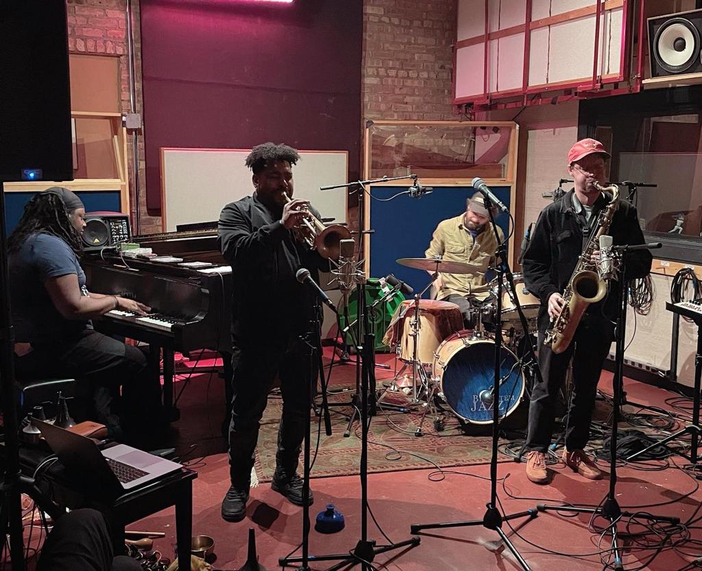 11 novembre, Pro Musica. C’est la deuxième fois en deux jours que Quentin Biardeau et Étienne Ziemniak pénètrent dans le salon de musique de Ken Christianson. La veille inopinément en duo, ils y ont enregistré quelques soulèvements de la terre. Aujourd’hui en quartette, avec Corey Wilkes et Justin Dillard, ils continuent de flamboyer et de découvrir des promontoires rocheux, des vallées perdues, dans l’égarement ou dans le ravissement.
