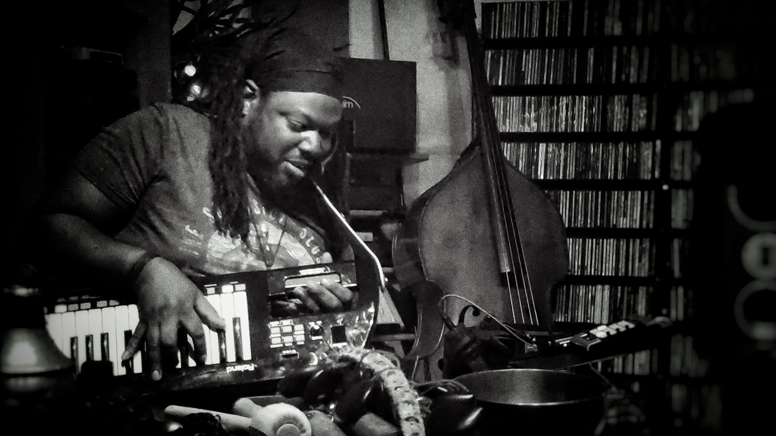5 novembre, Woodland Pattern Book Center à Milwaukee. Ici, c’est à l’invitation de la série Alternating Currents Live que CRM joue d’abord les poissons des abysses, ceux des profondeurs, ceux qui utilisent la bioluminescence pour que luise quelque chose dans les ténèbres. Ce quelque chose, après une série d’éruptions successives, remontant à la surface de l’eau, des choses, des mondes, prendra les proportions d’une île volcanique dont les musiciens seront les premiers habitants. Qui bondissent littéralement, qui sautent et explosent de joie. Ashé ! s’exclame Corey Wilkes pour Fred Anderson, pour Harrison Bankhead (dont la voix, samplée, s’ajoutait déjà à Madison à celle de Jacques Brel).
